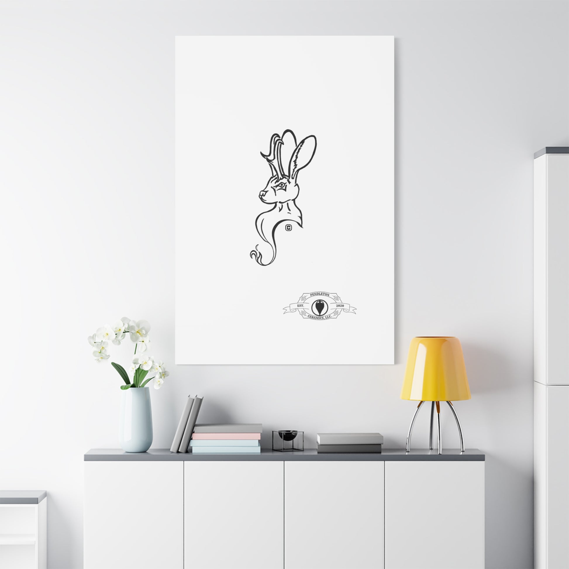 Jackalope Bust Drawing Art Stretched Canvas Wall Decor