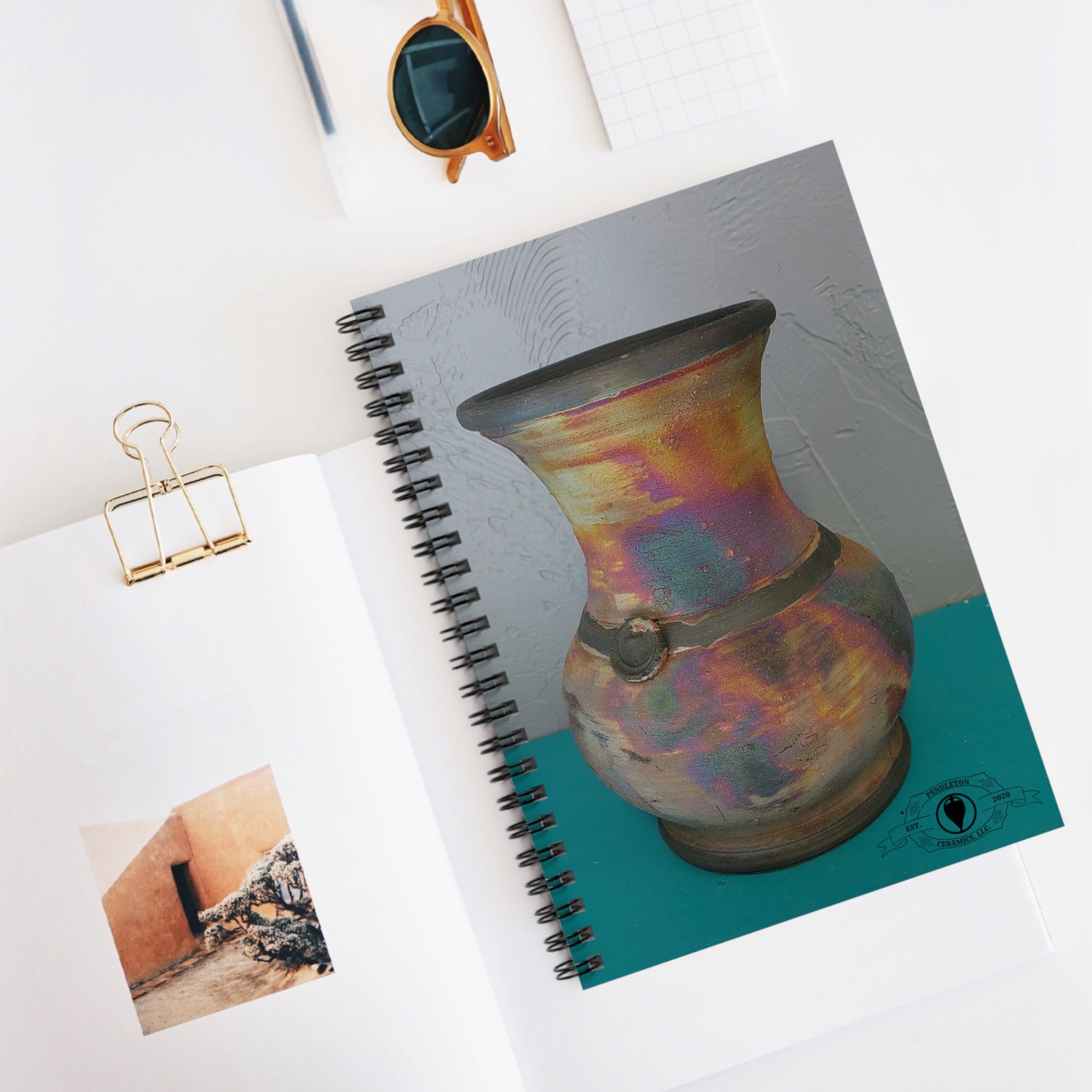 Western Raku Ceramic Vase Design Spiral Ruled Line Notebook